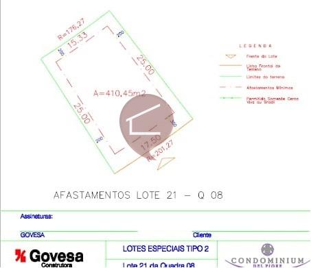 Ref: TE-022, bairro Condomínio Del Fiori, área total 410,45 m², terreno 410,45 m²Compartilhar: